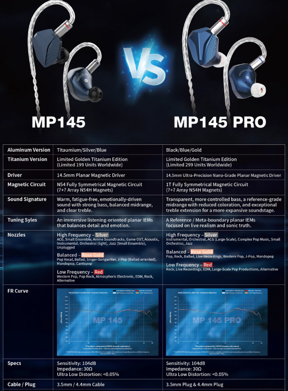 I’ve tested MP145 Pro and the og MP145 with Hidizs AP80 PRO MAX DAP (balanced output + balanced ear tips + balanced filters)