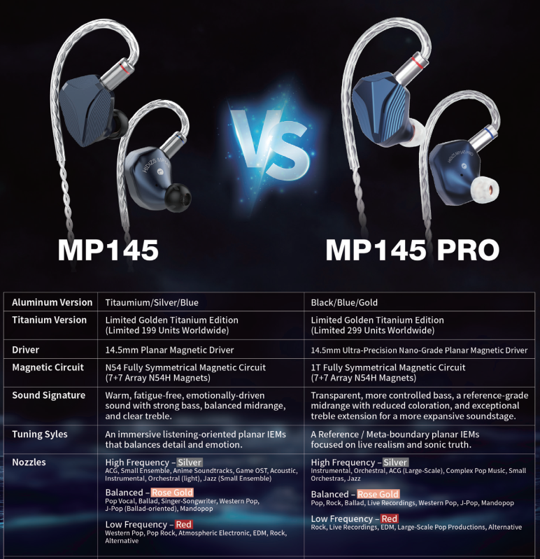 detail, the MP145 PRO provides a truly distinct experience compared to the MP145. These upgrades not only set the MP145 PRO apart but also elevate its overall sonic performance, making it an ideal choice for audiophiles, professionals, music enthusiasts, and gamers. It delivers the precision required for both critical listening and immersive audio experiences.