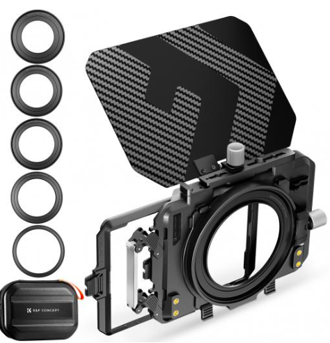 I didn’t consider this option first – it seemed bulky and incompatible with round lens filters. I was trying to find some universal lens hood but failed. After digging to matt boxes deeper, I’ve ended up buying K&F Concept Matte Box (Nano-Xcel) that accepts rectangular and regular round filters, comes with 4 adapter rings to fit different lenses. I am using it with my lenses + step up ring to 67mm (my lenses are 52 and 55mm) and matt box on top. It allows regular round 67mm filters and works fine with both CPLs and NDs.