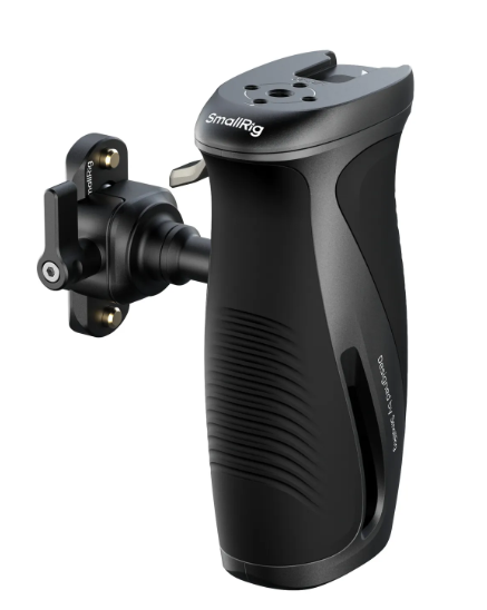 Having all rig assembled and operating follow focus with the right or left hand requires some solution to hold this setup conveniently and securely. I’ve tried non-rotating smallrig handle and it puts a lot of strain on my wrist at low camera angles. Therefore, I bought universal left/right hand handle that can release this strain by adjusting its angle by a single press of a button. This now allows me to hold the setup with right or left hand and operate follow focus, zoom or filters with another hand.